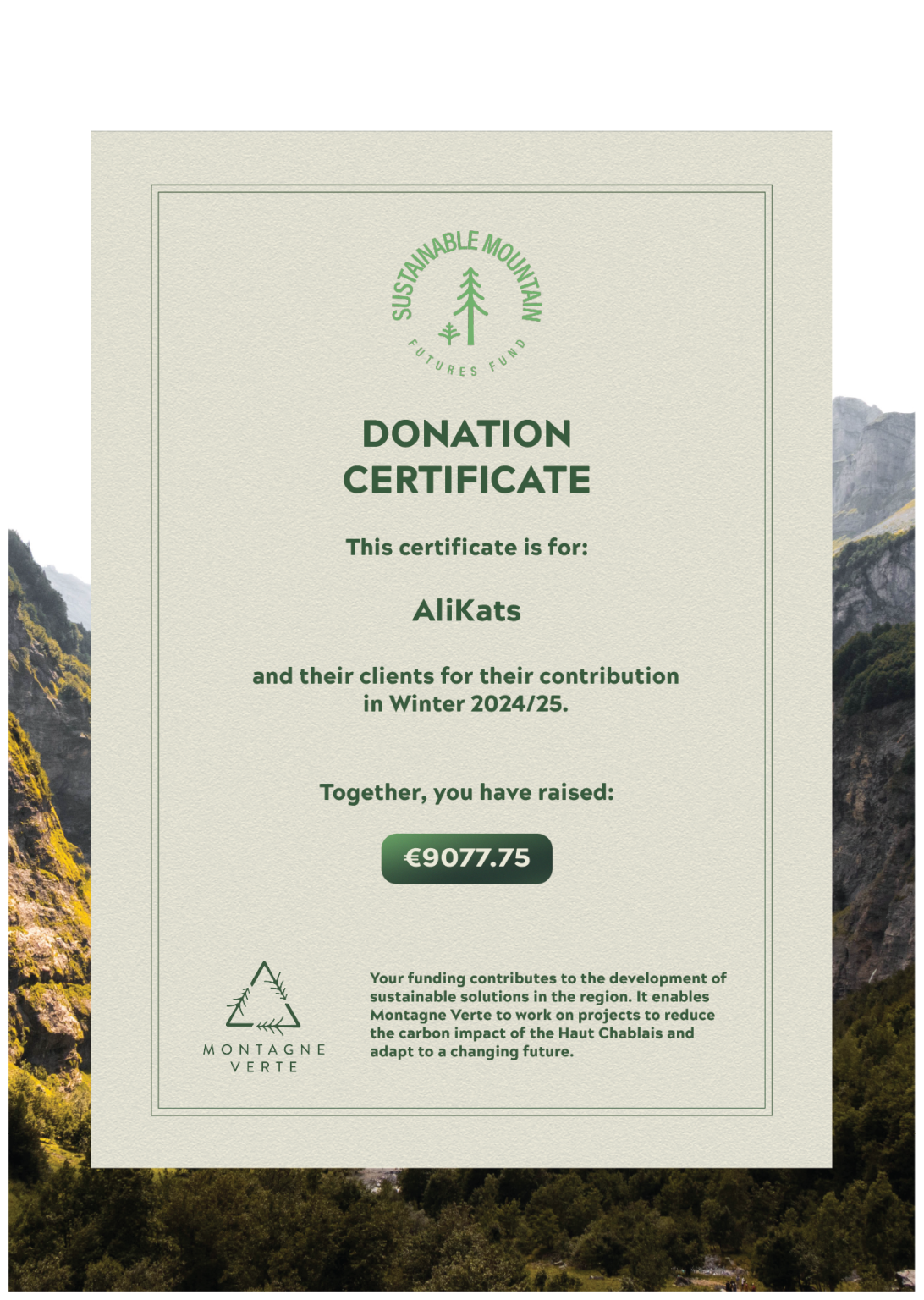 11. To continue our carbon neutrality transport contribution to enable guests to measure and mitigate the carbon produced by their transport to resort. By opting into this program our customers can rest assured that their contribution is invested in the Sustainable Mountain Futures Fund. This fund contributes towards climate adaptation locally, enabling our local environmental non-profit, Montagne Verte, to work on projects such as encouraging train travel, improving local transport options and supporting businesses and residents to reduce their carbon impact and prepare for the future.
